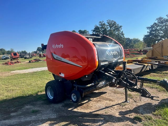 2023 KUBOTA BV4160 PREMIUM NET 4×5 baler, floatation tires, bale ramp, wide pickup reel, hydraulic lift pickup reel, net wrap, silage capable, in-cab density control!!! ONLY 1950 BALES!!!